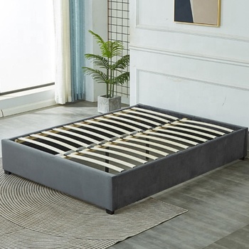BASE de cama doble de terciopelo suave y felpa moderna, diseño de tapicería de tela, marco de madera QUEEN, gran oferta