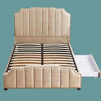 Bedroom Set Furniture Western Style Soft Turfed Nails Headboard with Sideboard One Drawer Upholstery Fabric Velvet Double Bed