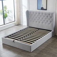 Hiện Đại Và Thanh Lịch Phòng Ngủ Cấu Trúc Mạnh Mẽ Nút Cánh Trở Lại Đầu Giường Vải Lưu Trữ Gas Lift Bọc Ottoman Khung Giường