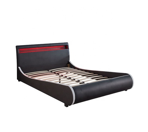 Thị trường Châu Âu hiện đại honglin nhà máy bán buôn màu đen mềm bọc giường khung thiết kế với ánh sáng LED