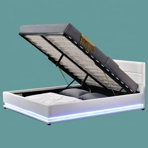 Đồ Nội Thất Phòng Ngủ Mô Hình Mới Đôi Nữ Hoàng Vua Gas Lift Giả Da Tufted Đầu Giường Bọc LED PU Lưu Trữ Giường Thiết Kế
