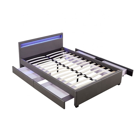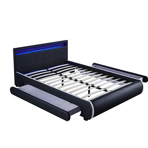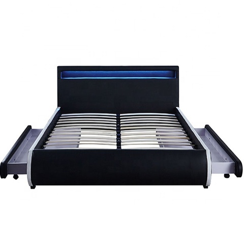Bộ Đồ Nội Thất Phòng Ngủ Giá Rẻ Lưu Trữ Pu Leather Double King Size LED Bed Với 2 Ngăn Kéo